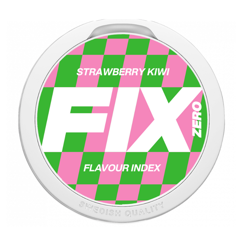 Makean mansikan ja kirpeän kiivin täydellinen liitto! FIX Strawberry Kiwi ZERO on raikas ja hedelmäinen nikotiiniton & kofeiiniton pussi, joka tarjoaa kesäisen makunautinnon ilman stimuloivia ainesosia. Ihanteellinen valinta, kun kaipaat makua – mutta et nikotiinia tai kofeiinia.